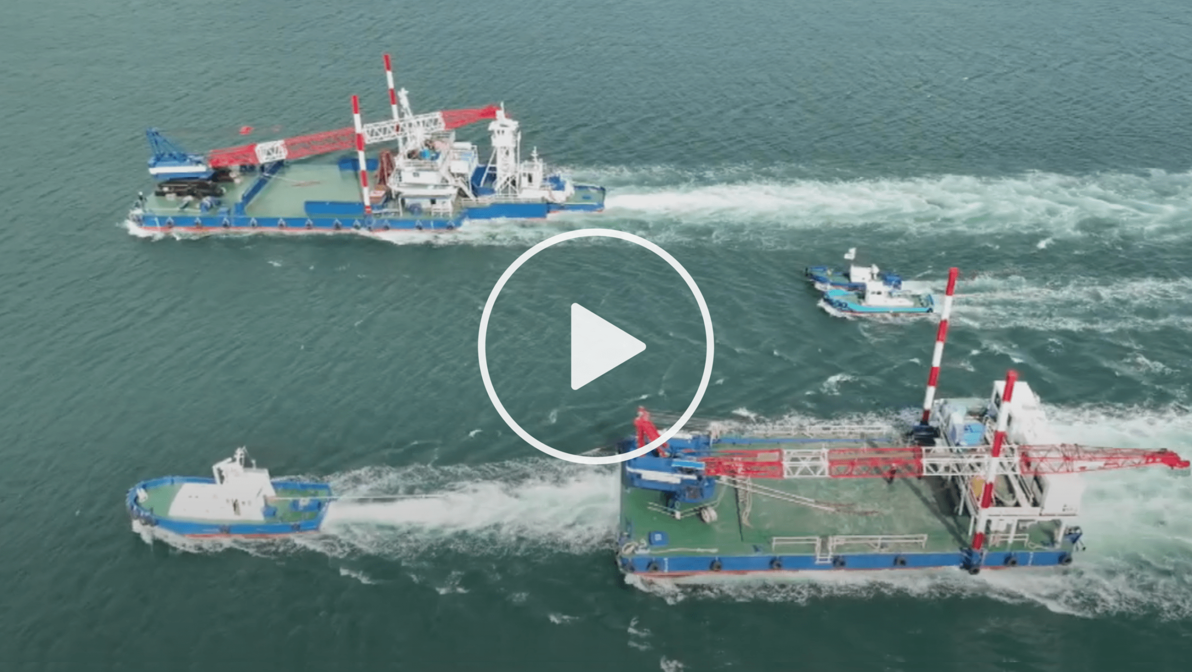 当社が誇る所有船舶・起重機船2隻が並走する、めったに見られない貴重な瞬間を収めた映像です。
