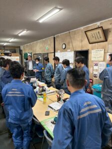 千葉君津構内にて、「安全衛生会議 (※作業指揮者のみ参加)」および「各グループの終礼」が行われました。当日は全ての場に社長が参加し、各作業場の視察とあわせて、日頃の労をねぎらう激励の言葉が送られました。現場の声に耳を傾け […]